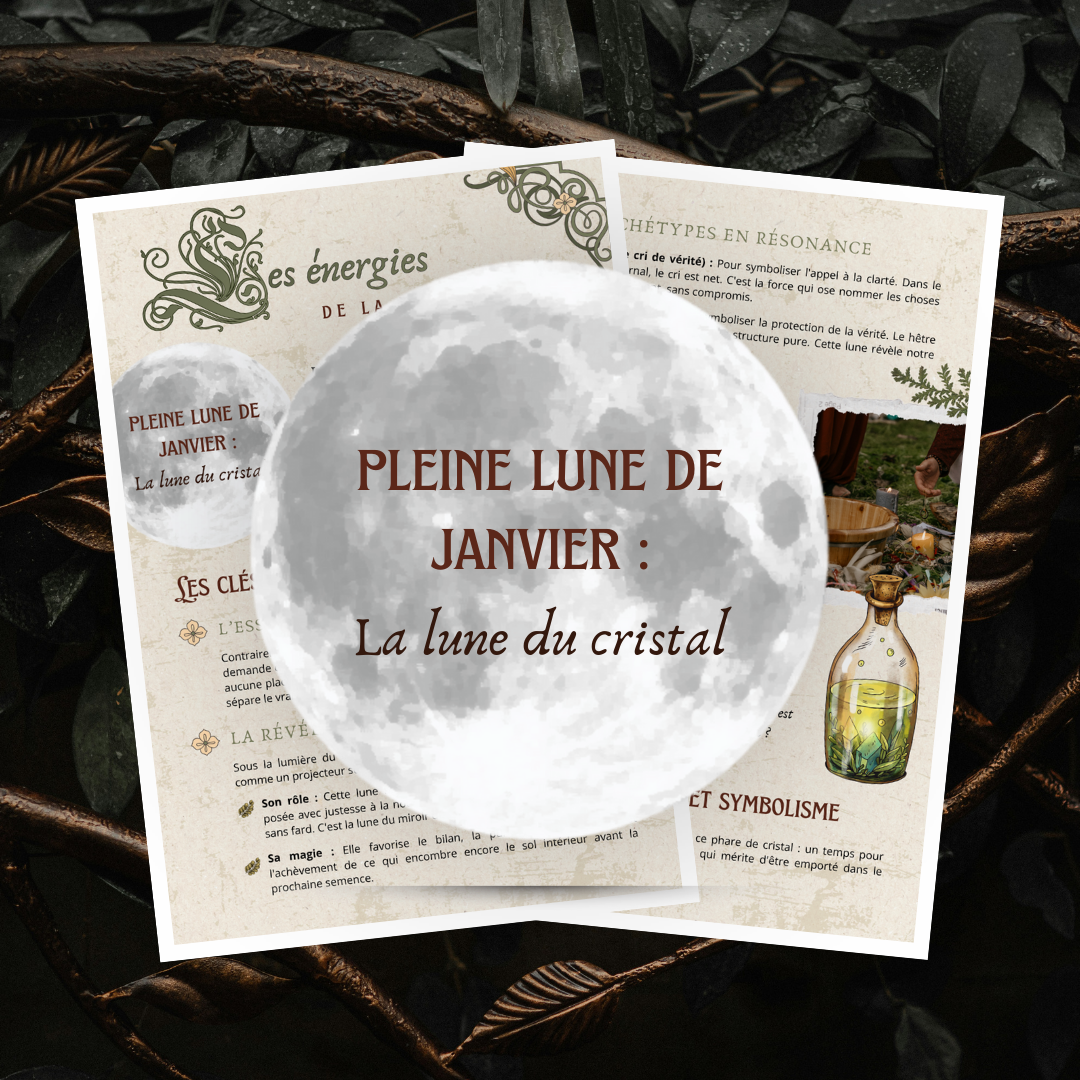 Honorez l’éclat de la lune une de cristal avec cette fiche dédiée à la Pleine lune de Janvier. C’est le moment idéal pour célébrer vos accomplissements et laisser partir ce qui ne vous sert plus sous la lumière argentée.