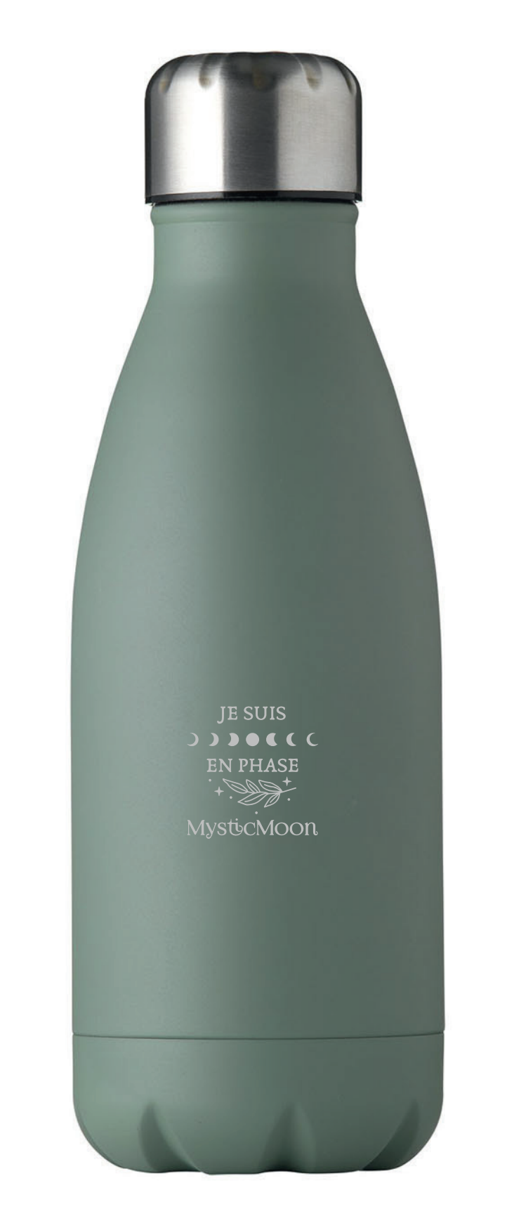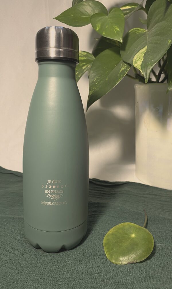Hydratez-vous avec style et en accord avec les cycles lunaires grâce à cette gourde « Mystic Moon » verte, à la fois pratique, écologique et inspirante. Arborant un design élégant avec les phases de la lune et l’inscription « Je suis en phase », cette gourde vous accompagnera dans toutes vos activités.