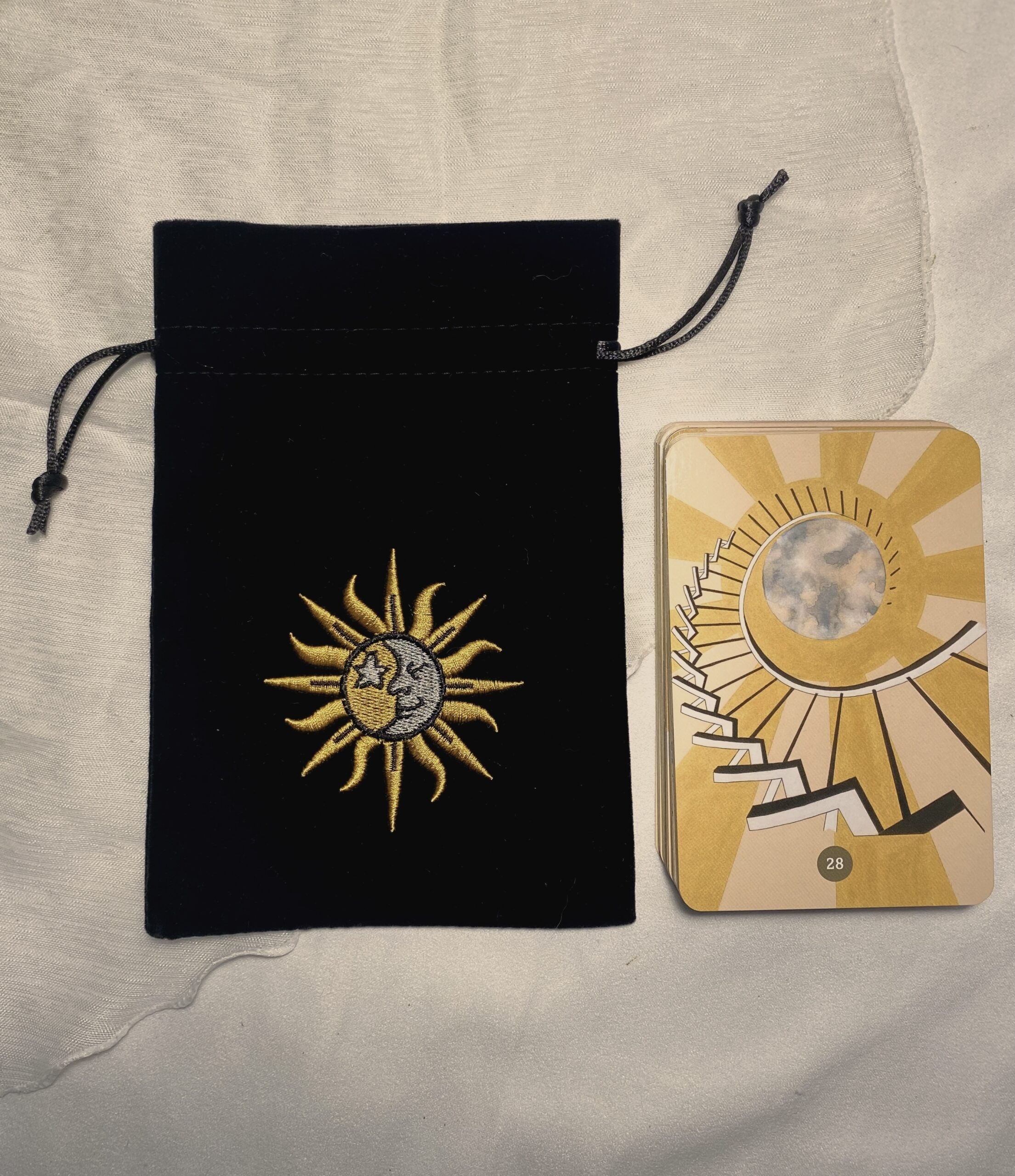 - Polyvalence : Ce pochon est idéal pour ranger un jeu de tarot ou d’oracle de taille standard. Il peut également être utilisé pour protéger vos cristaux, runes, herbes, huiles essentielles, bijoux, ou tout autre objet précieux.