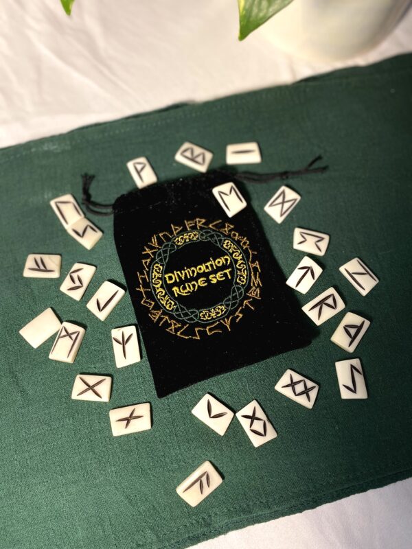 - Pochon de velours : Les runes sont livrées dans un pochon en velours doux, idéal pour les protéger et les transporter facilement.